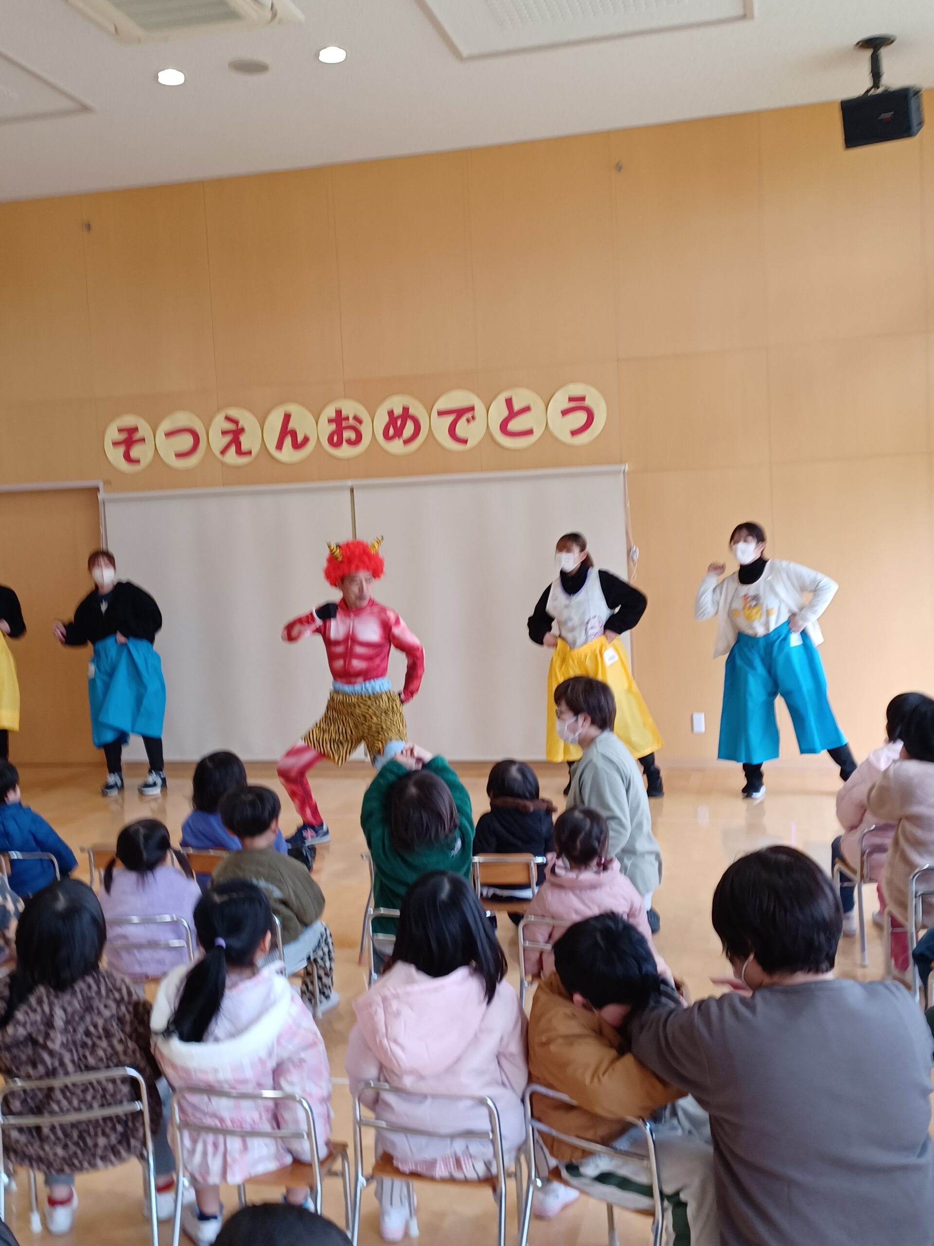 お遊戯会でも披露したキューピー3分クッキングをお別れ会バージョンにリメークしたり、鬼のパンツにも合わせてつき組さんを替え歌でつき組さんにエールを送りました☆