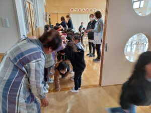 つき組のお友達はお名前、行く小学校、小学校で頑張りたいことを発表してくれました!テストや国語の授業、跳び箱など、頑張りたいことが盛りだくさんのようです♪頑張ってください\(^o^)/