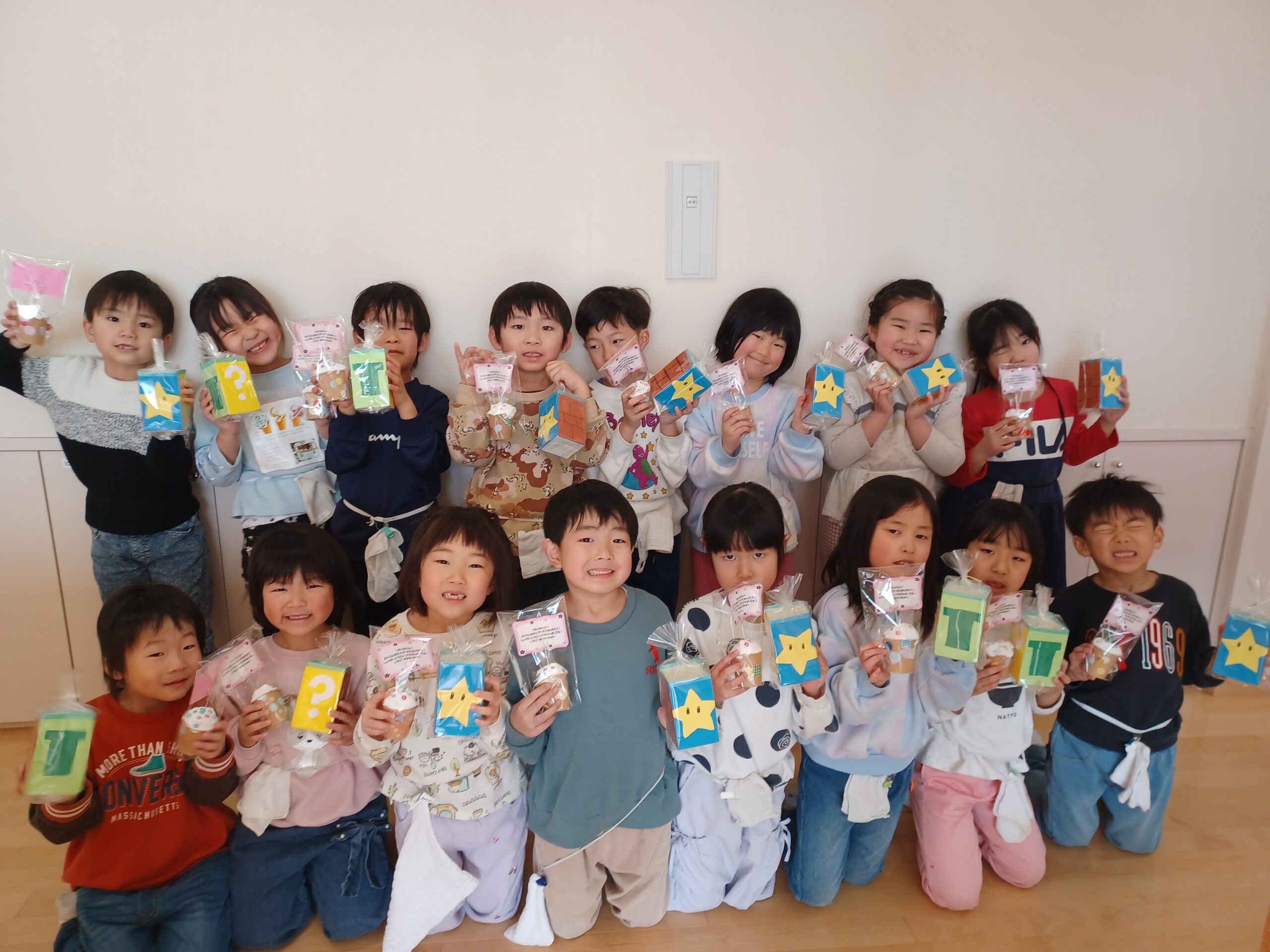 りす組さんとつばめ組さんからマリオのペン立てをつき組さんにプレゼントしました!