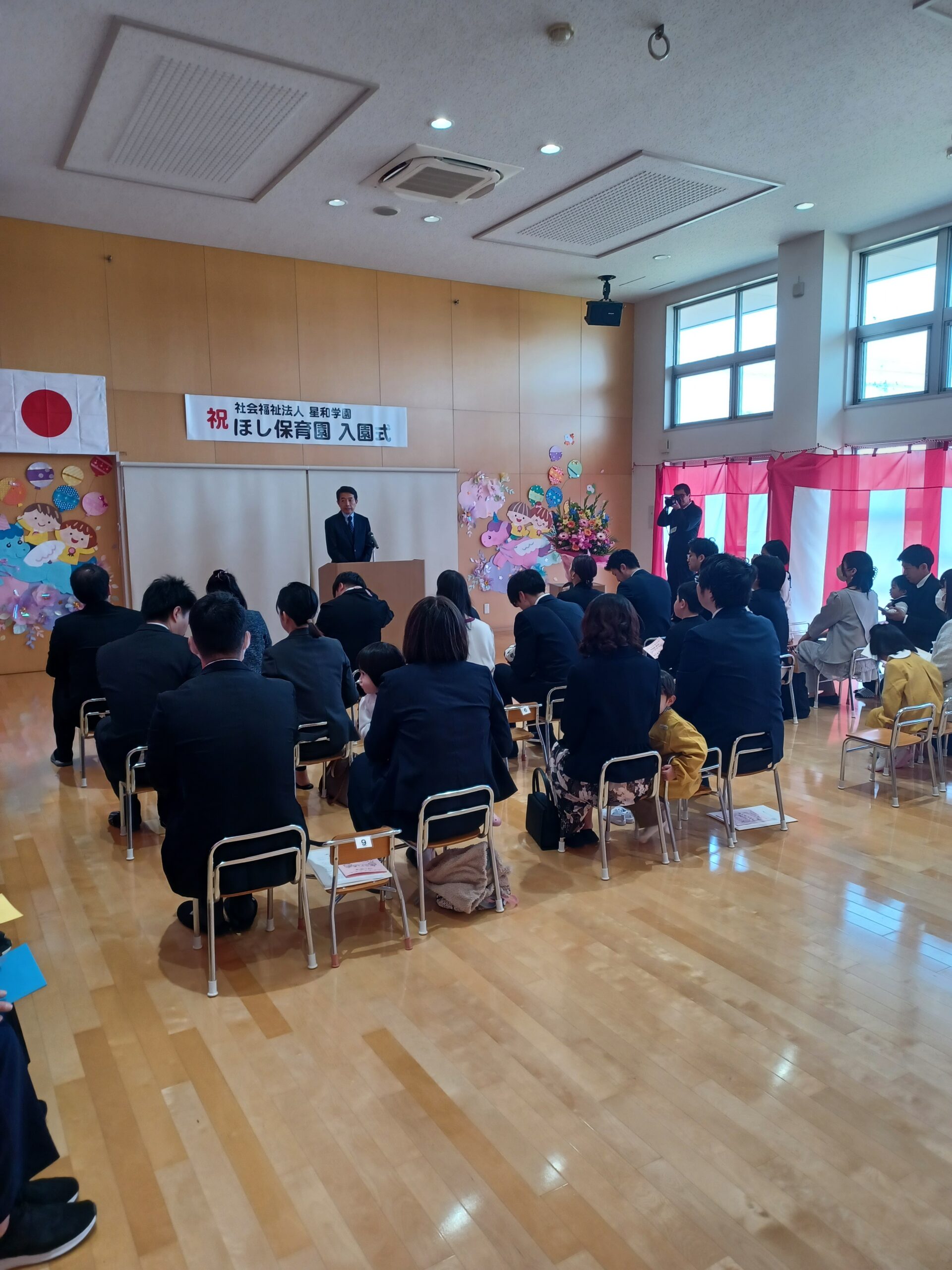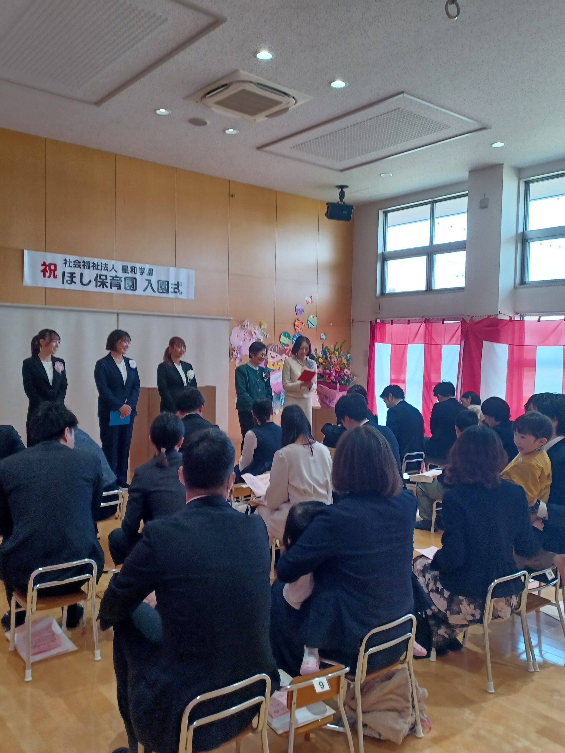 2026.04.13 入園式❁ カテゴリー:スタッフブログ 入園式がありました♪ 今年度は、15名のお友達が仲間入りしました(⑅•ᴗ•⑅) 緊張している子や、ニコニコしている子など様々な様子が見られましたよ!担任の先生が名前を呼ぶと、お家の人と一緒に「はーい!」と元気よくお返事が出来ました! ほし保育園の保育目標である「あかるく・かしこく・たくましく」で一緒に過ごしていきましょう! 入園おめでとうございます(,,>᎑<,,)